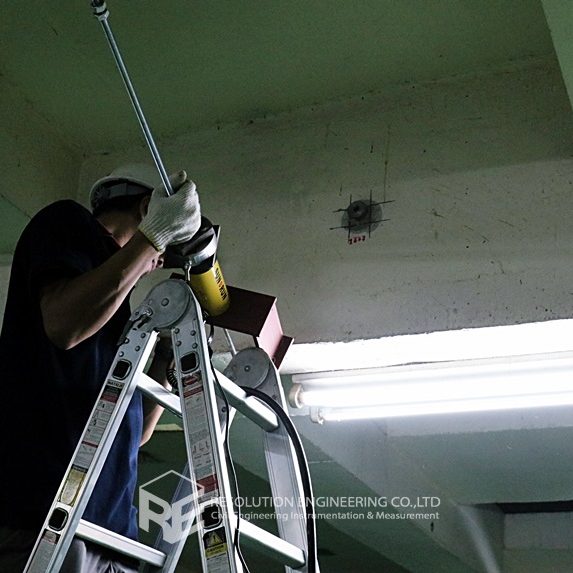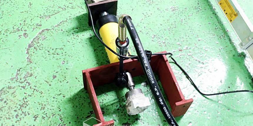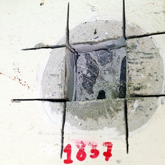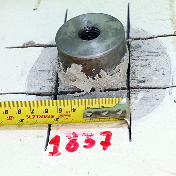 The Concrete Pull-Off Test is used to determine the direct tensile strength of a concrete or the bond strength of concrete mixture. The testing equipment consists of metal test circular plates, threaded rods, epoxy, a core drill, a load cell, a displacement transducer, and a hydraulic jack.