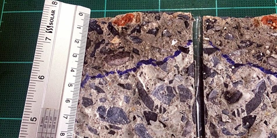Concrete permeability is to determine how quickly oxygen, water and chloride ions will reach the layers of steel embedded in concrete, resulting in deterioration from reinforcement corrosion, carbonation, alkali-aggregate reaction, spalling of concrete, water leaking etc. Concrete cylindrical specimens were cored from a water storage structure, then the permeability test was conducted to determine the depth of water penetration and evaluate the water resistance ability as well as the life lasting of the existing structure.